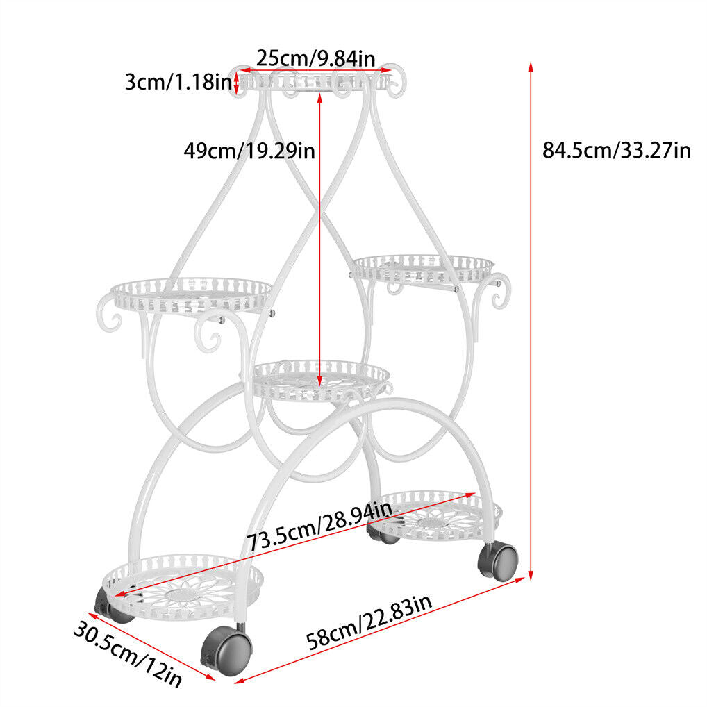 Movable Metal Plant Stand Garden Cart Indoor/Outdoor Decor